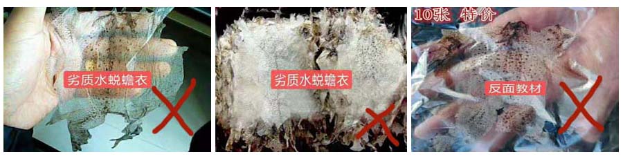 劣質(zhì)水蛻蟾衣,以低價(jià)誘人,救命用的,切莫上當!