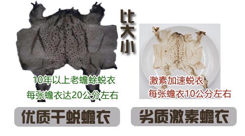 來(lái)買(mǎi)蟾衣的家人都是用來(lái)救命的,關(guān)心的首先是它的質(zhì)量,作用,而不是哪個(gè)便宜要哪個(gè),成熟的自然干蛻蟾衣,黑點(diǎn)多,效果好;還有激素水蛻蟾衣,白色或者接近白色,基本沒(méi)有作用。